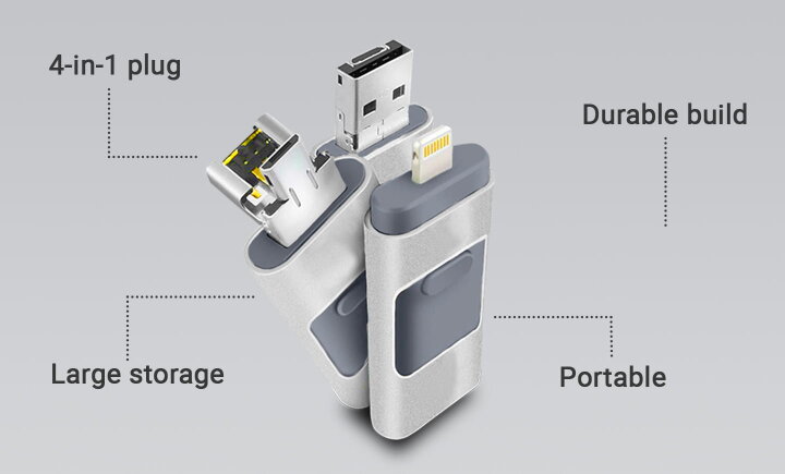 Yes, you absolutely can. This USB stick has a 4-in-1 connector that is compatible with various devices, including Android and iOS smartphones. Simply plug the USB into your phone and transfer files, photos, or videos with a single click.